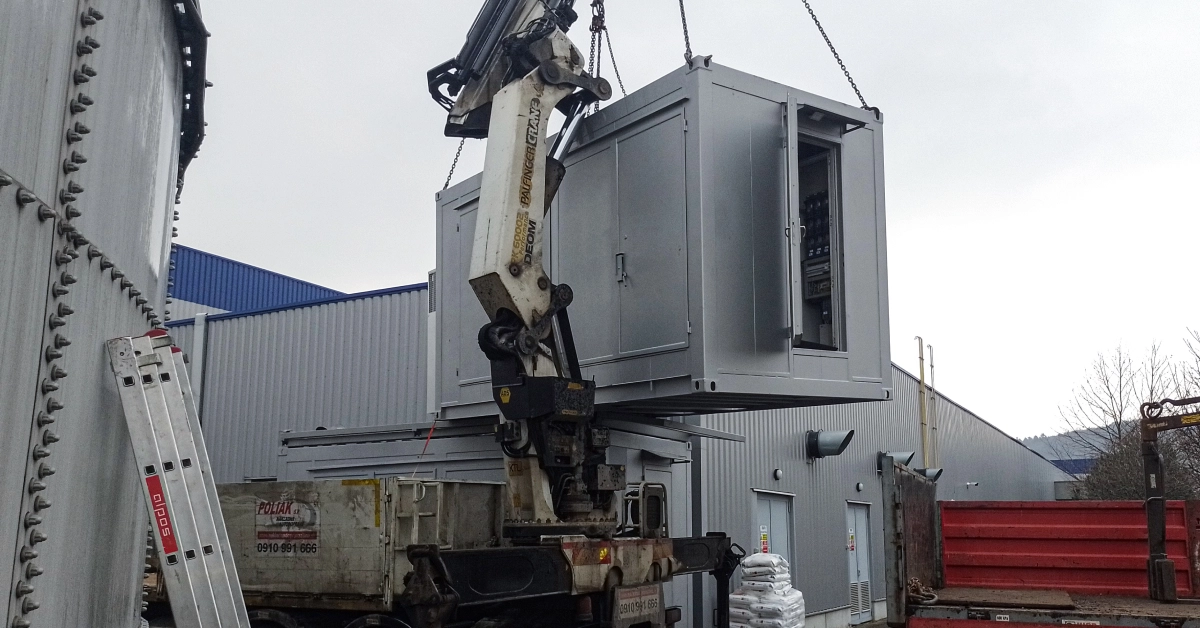 Due to a lack of space, we had to divide the storage into two systems in an exterior container version with a capacity of 432 kWh. The containers were placed on top of each other and interconnected with a walking platform with retractable stairs. The storage system must be located near the main distribution box, which often complicates the situation for us and requires a certain amount of creativity :-)